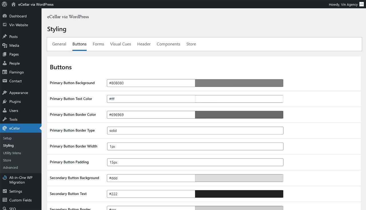 - Exposes eCELLAR styling variables, so you can customize appearance in WordPress without editing code