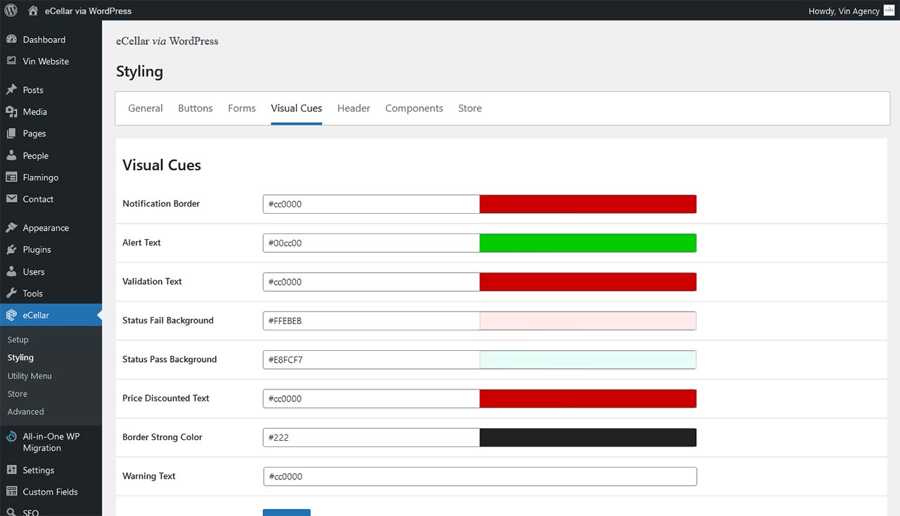eCELLAR via WordPress enables visual customization of the eCELLAR theme styling with dozens of options, enabling you to match your website design and visual brand identity.