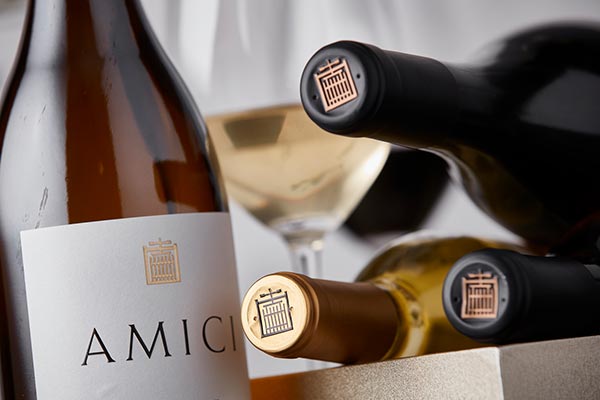 Amici Cellars sources from 10 outstanding vineyard sites, and is a darling of the critics. The proprietors aimed to integrate dynamic video of their impressive vineyards while also honoring the welcoming intent behind the winery name, which translates as “friends.” In addition, they aimed to minimize any potential consumer confusion about the various bottlings, with multiple vineyard designates and two affiliated brands, Olema and No Curfew.