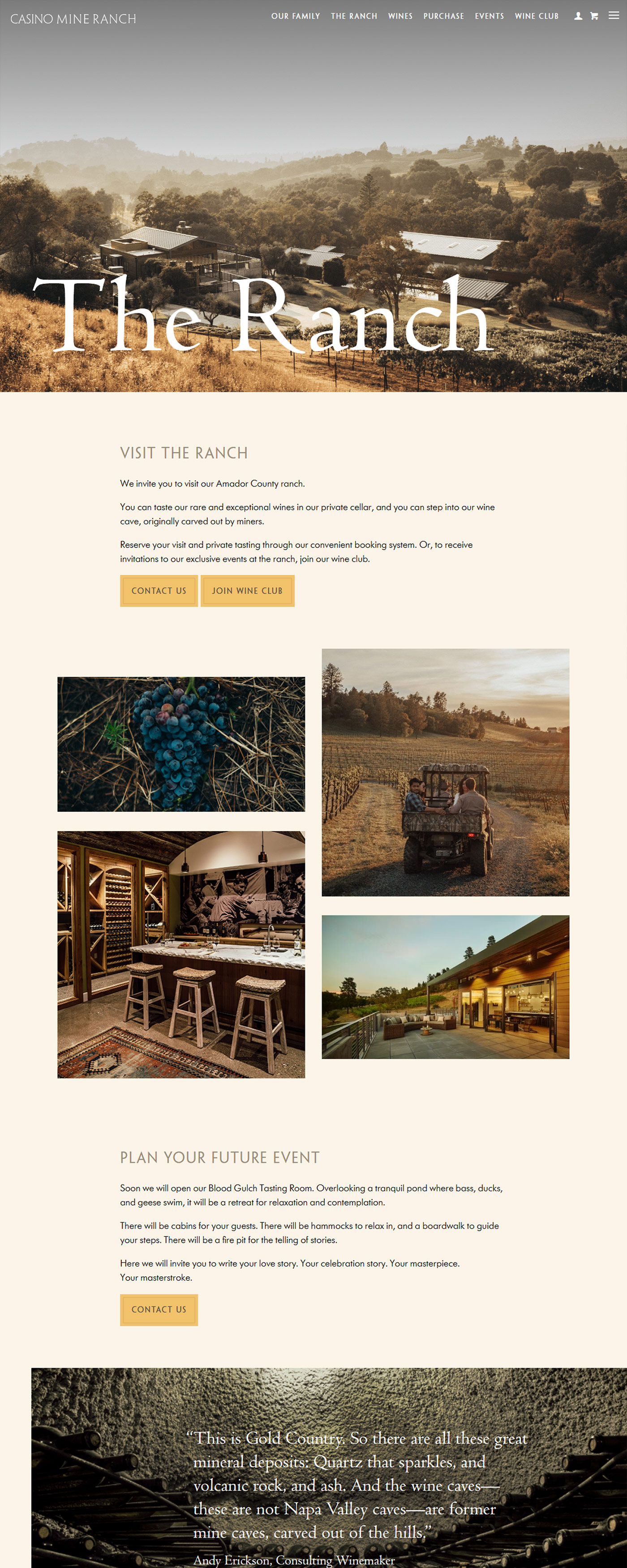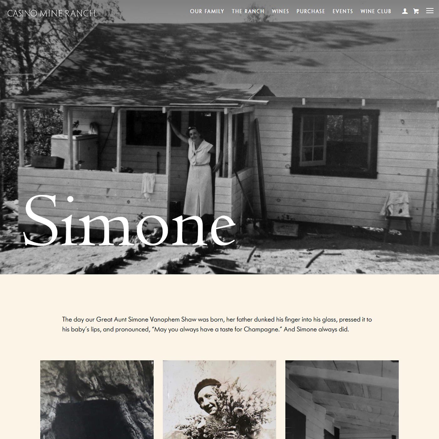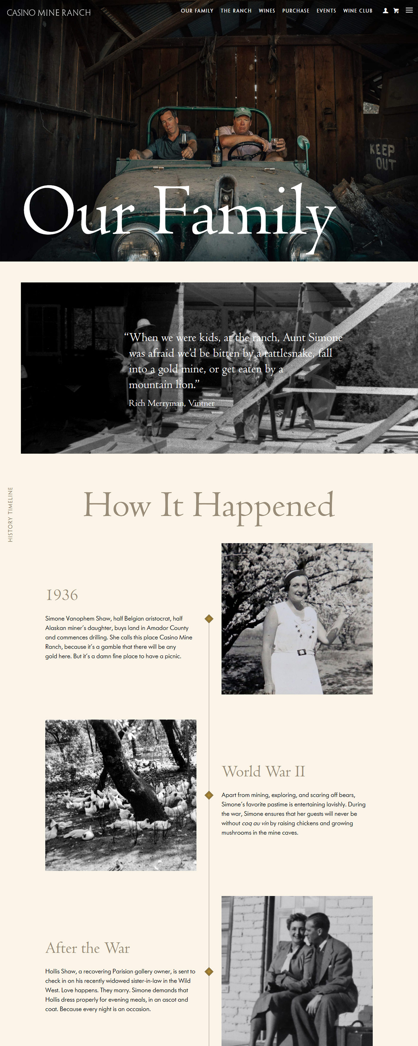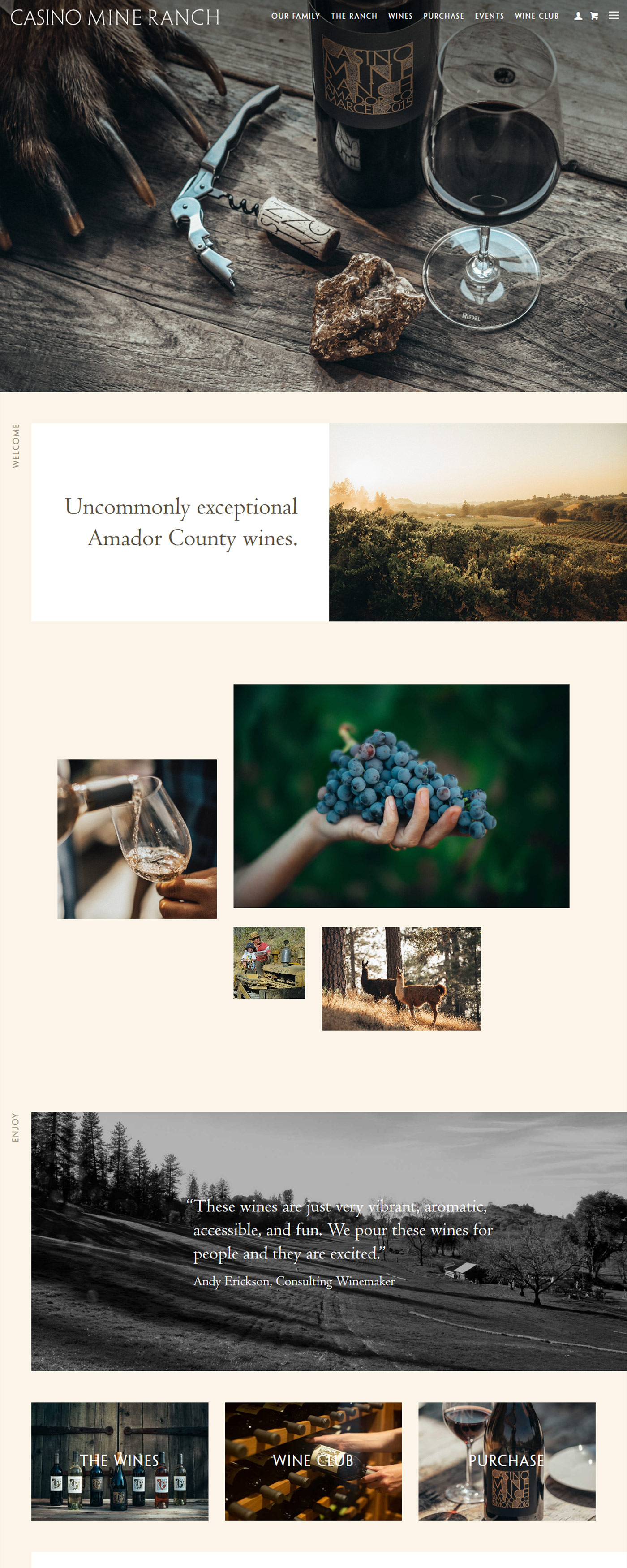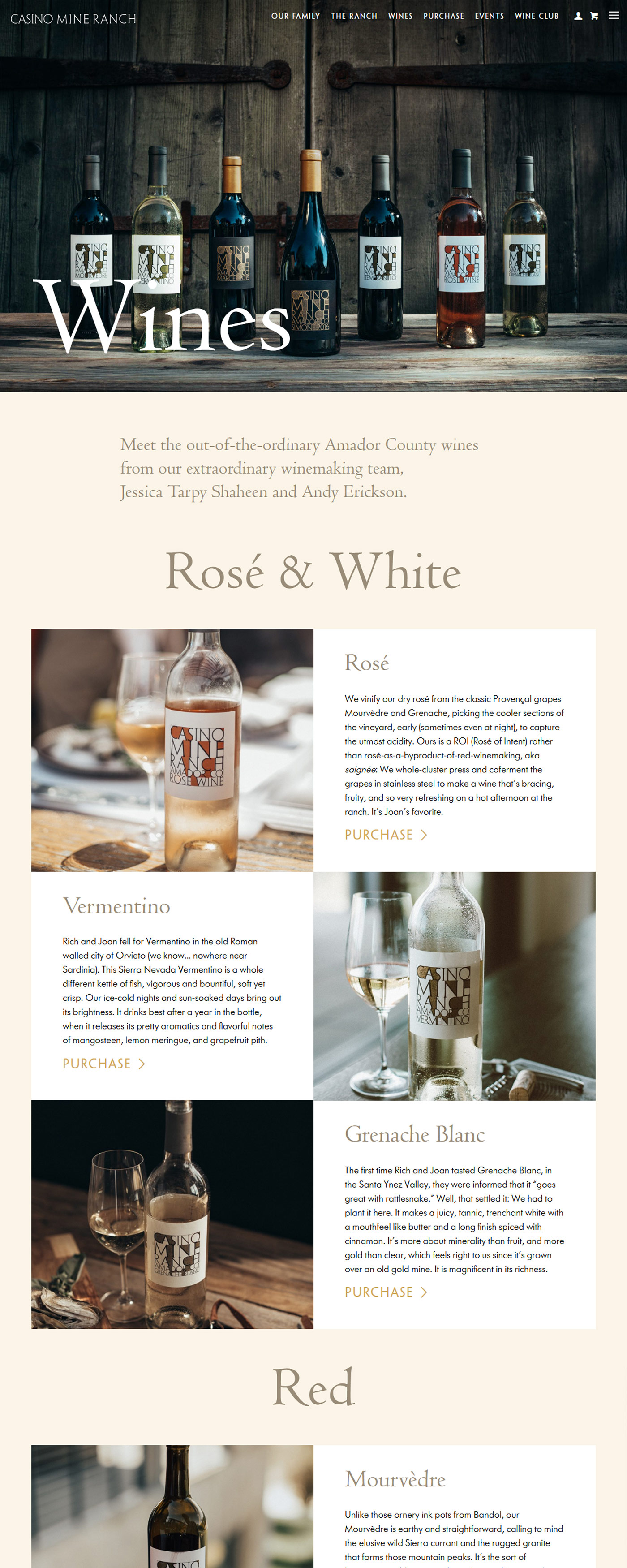 Casino Mine Ranch had a star winemaker and a compelling back story. The proprietors’ great aunt, a Belgian heiress by way of Alaskan gold mines, had been a larger-than-life presence on the wild western ranch, donning fur coats and strings of pearls, raucously playing the piano, and shooting rattlesnakes from her back porch. The wines were unique and expertly crafted. And the label designs were handsome. But the website lacked consistent engagement. Customers would view it after receiving a release email, but not spontaneously. Vin designed and developed an online environment that reflected the frontier spirit of the place and the Merryman family’s droll sense of humor. Site visitors stayed, came back for more, and spread the word about Casino Mine Ranch.